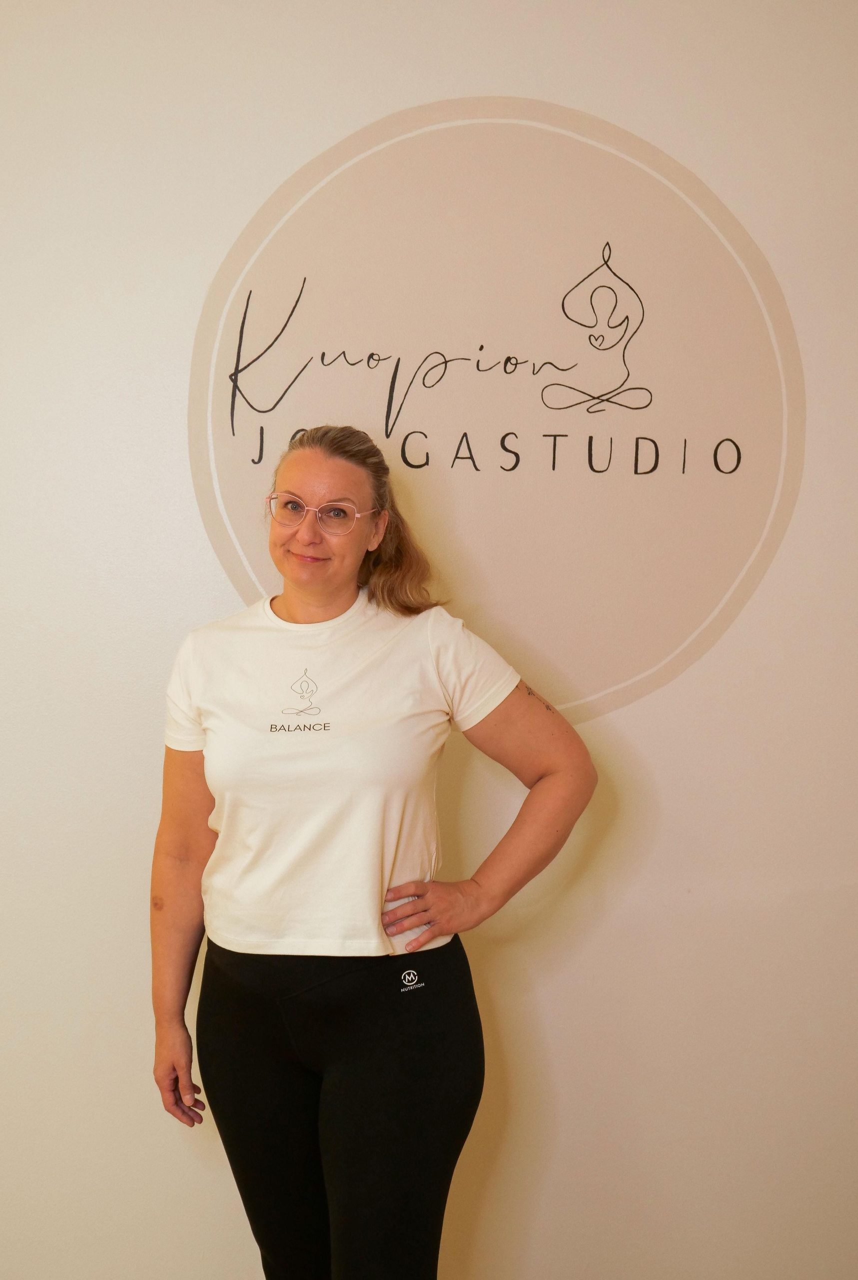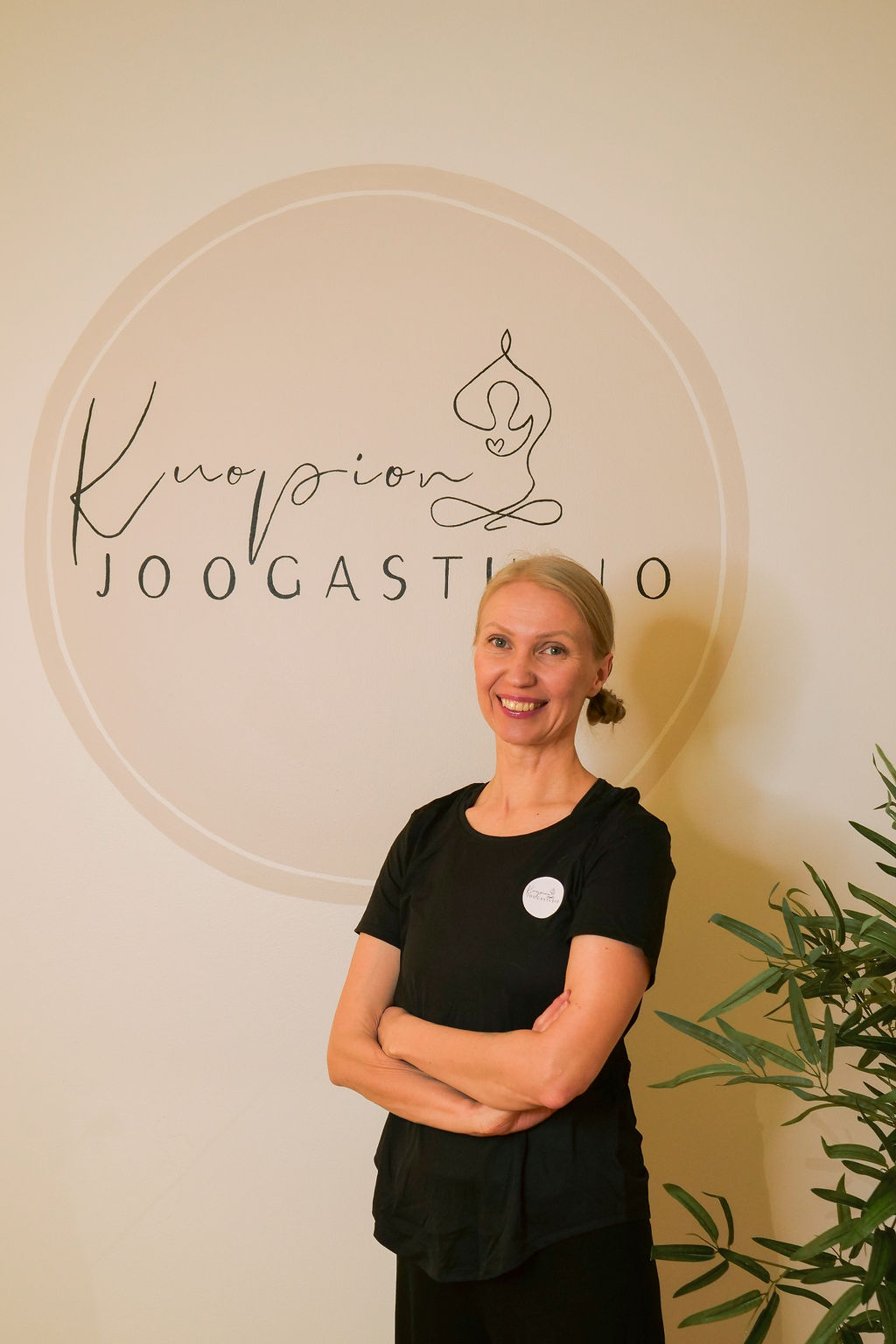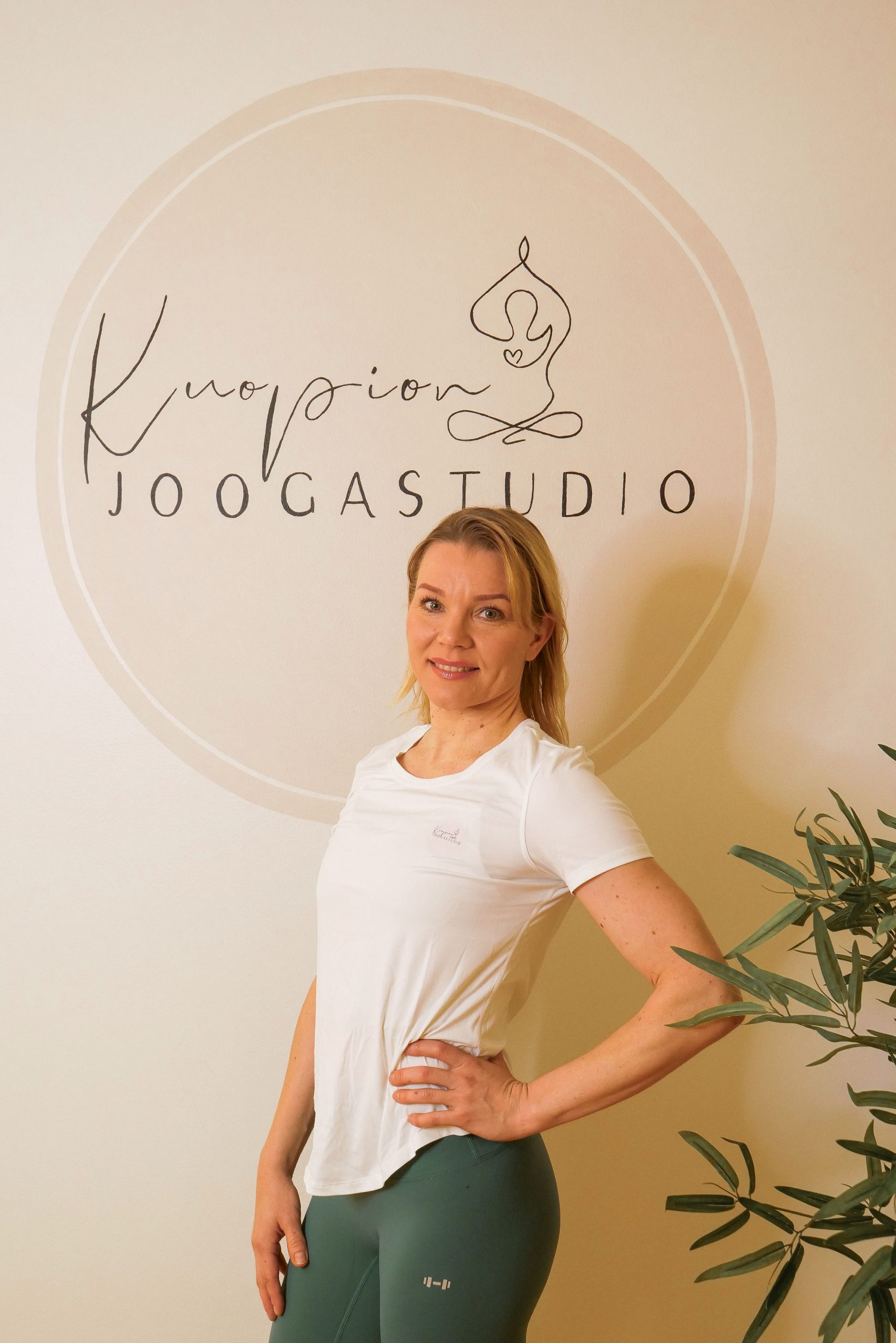 Hän ohjaa joogaa ja pilatesta Kuopion Joogastudiolla.